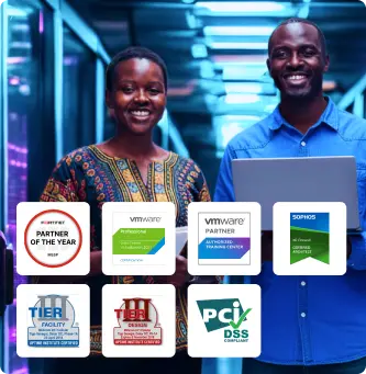 Notre data center à Dar es Salaam est conçu selon les standards Tier III : redondance N+1 en alimentation & refroidissement, groupes électrogènes de secours, UPS, chemins d’énergie séparés — pour garantir que vos systèmes ne soient jamais hors service.